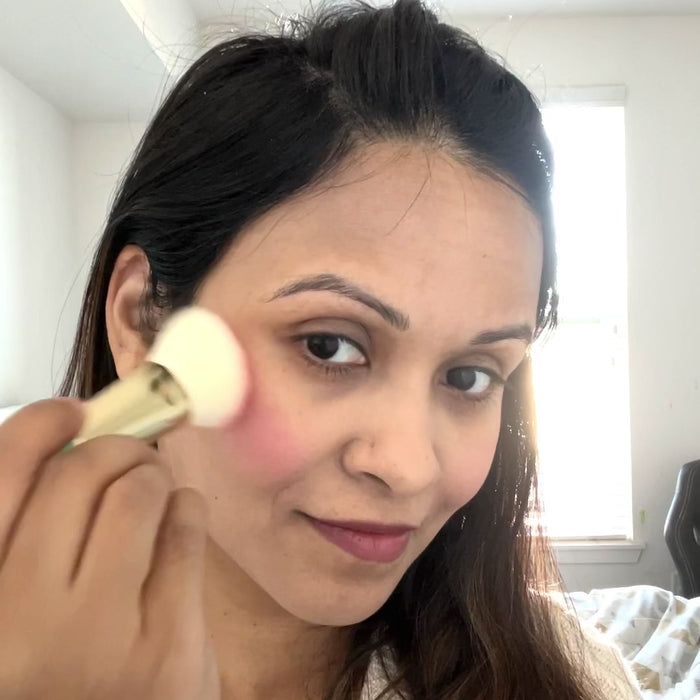 Achieve a seamless, natural blush with our ultra-soft, cruelty-free powder blush brush. Its perfectly shaped bristles allow for smooth, even application, blending blush effortlessly for a radiant, long-lasting finish. Perfect for every look, from subtle to bold.